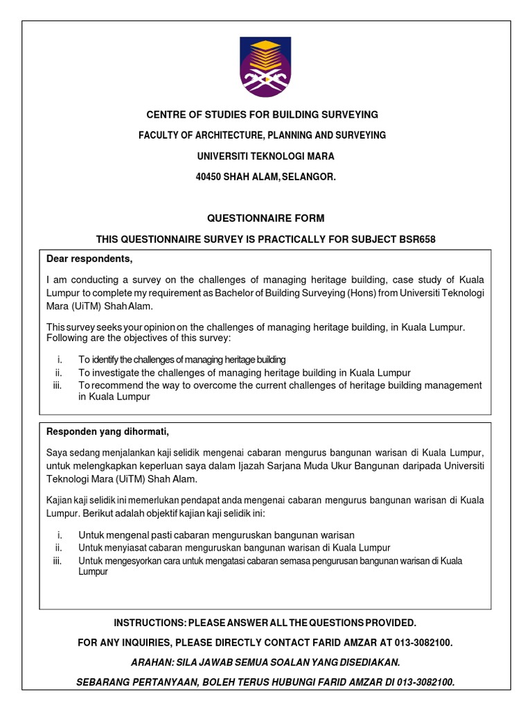 Challenges Of Managing Heritage Building Questionnaires Pdf Business
